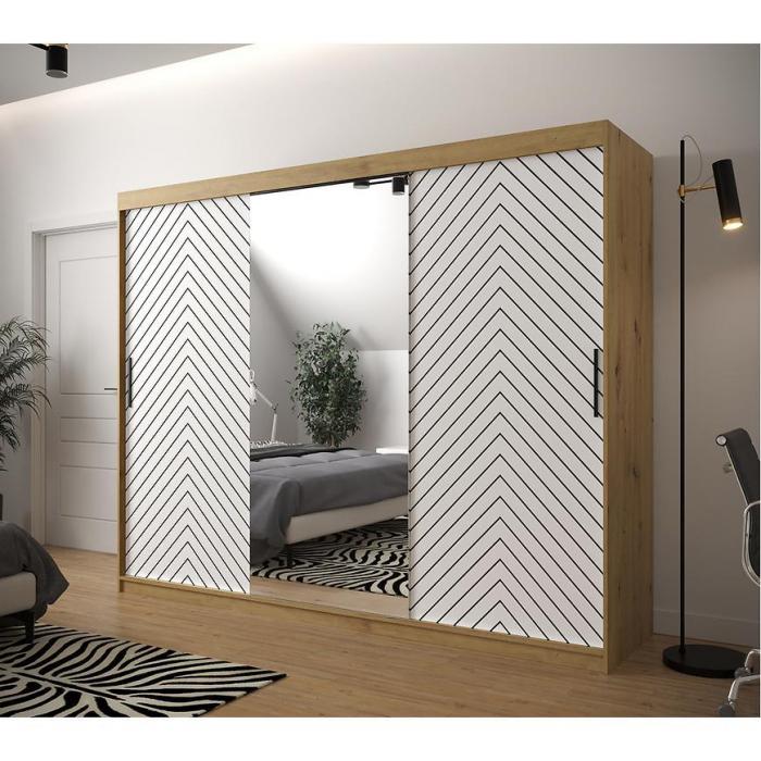 Szafa z drzwiami przesuwnymi Jodełka to doskonały wybór do garderoby, przedpokoju, salonu czy sypialni. Kolor frontów i korpusu sprawiają, że wpasuje się w większość aranżacji. Jej wnętrze jest pojemne i pomieści zarówno ubrania jak i inne akcesoria. Szafa jest 3-drzwiowa.