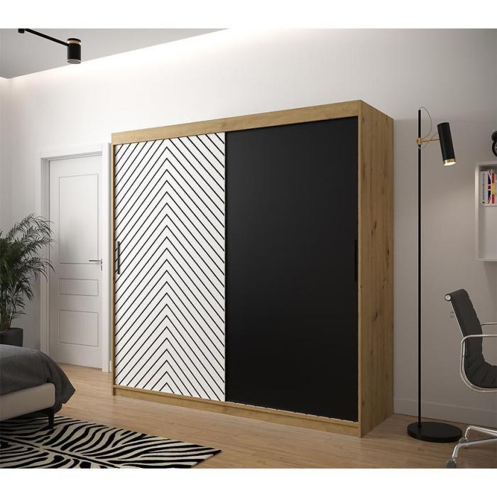 Szafa z drzwiami przesuwnymi Jodełka to doskonały wybór do garderoby, przedpokoju, salonu czy sypialni. Kolor frontów i korpusu sprawiają, że wpasuje się w większość aranżacji. Jej wnętrze jest pojemne i pomieści zarówno ubrania jak i inne akcesoria. Szafa jest 2-drzwiowa.