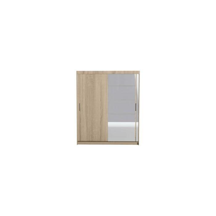 Szafa w kolorze dąb sonoma z kolekcji Jola to doskonała propozycja do pokoju dziennego, ale znajdzie swoje miejsce również w innym pomieszczeniu, jak na przykład - przedpokój czy garderobie, sypialni. Materiał wykonania to płyta laminowana. Szafa posiada półki, drążek na ubrania. Duża szafa posiada również lustro, które sprawi, że pomieszczenie stanie się optycznie większe. Mebel będzie świetnym miejscem do wieszania ubrań, na buty lub inne domowe tekstylia. Nowoczesny styl mebli wpadnie do gustu każdemu, kto poszukuje eleganckiego, klasycznego, a zarazem nowoczesnego umeblowania. Idealnie wpasuje się w większość aranżacji. Szafa przeznaczona do samodzielnego montażu.