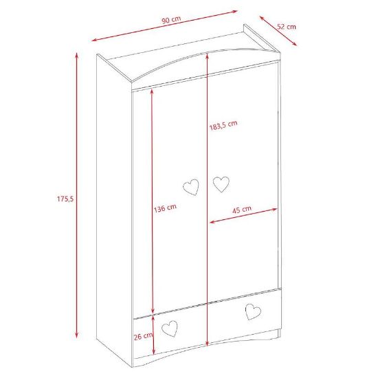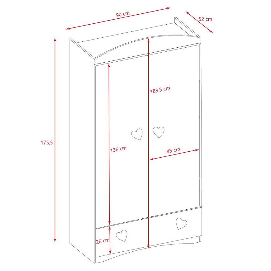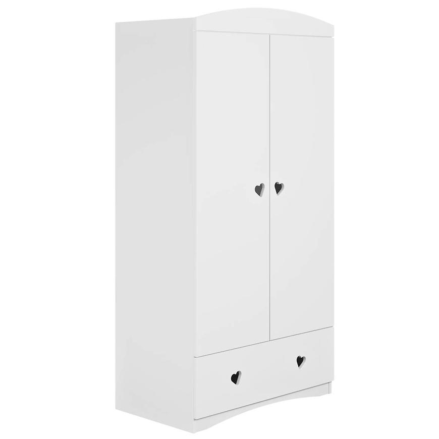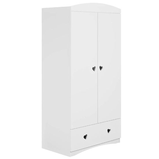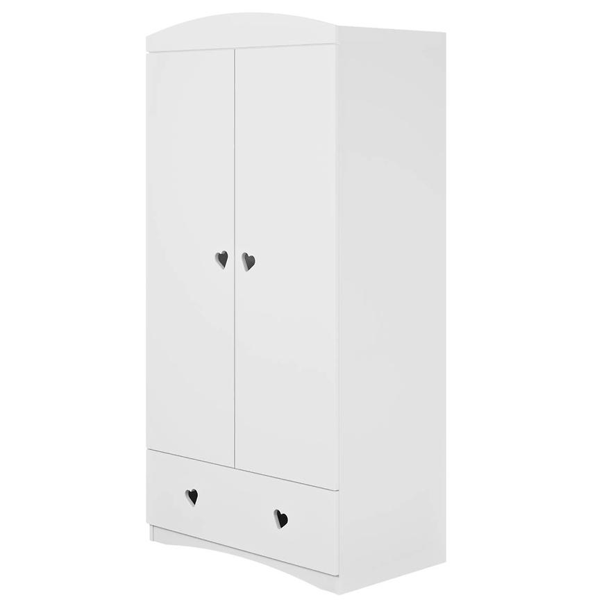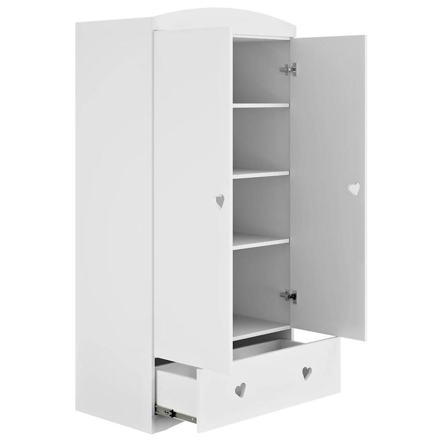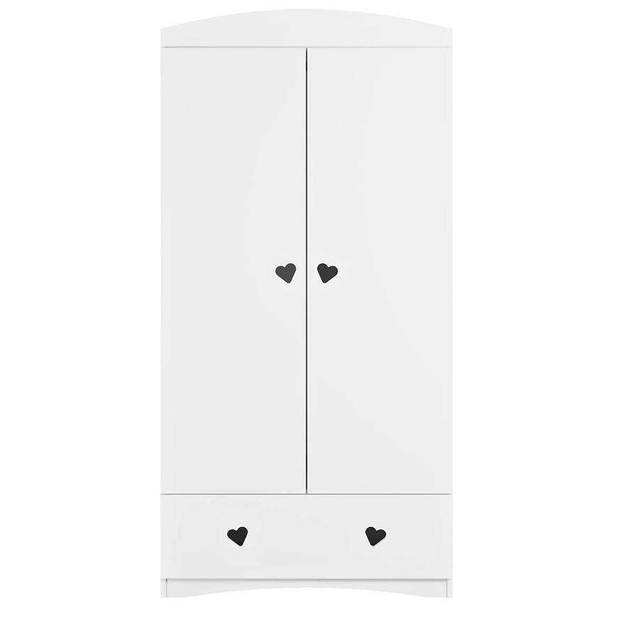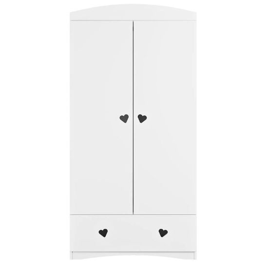 Szafa Julia Biały prezentuje się w kształcie prostym, co nadaje jej minimalistycznego charakteru. Klasyczne dwudrzwiowe rozwiązanie z prostymi drzwiami sprawia, że szafa jest łatwa do integracji z różnymi aranżacjami wnętrz dziecięcych.