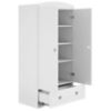 Białe wybarwienie zarówno drzwi, jak i korpusu nadaje szafie jasny i przyjemny wygląd. Matowe wykończenie frontów dodaje meblowi elegancji, jednocześnie łatwo utrzymanej w czystości. Konstrukcja frontów oparta jest na solidnej płycie wiórowej laminowanej, co gwarantuje trwałość.