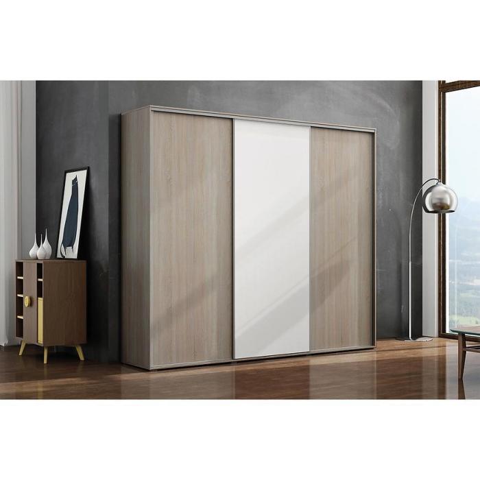 Szafa w kolorze dąb sonoma/biały z kolekcji Kalina to doskonała propozycja do pokoju dziennego, ale znajdzie swoje miejsce również w innym pomieszczeniu, jak na przykład - przedpokój czy garderobie, sypialni. Materiał wykonania to płyta laminowana. Szafa posiada półki, drążek na ubrania. Mebel będzie świetnym miejscem do wieszania ubrań, na buty lub inne domowe tekstylia. Nowoczesny styl mebli wpadnie do gustu każdemu, kto poszukuje eleganckiego, klasycznego, a zarazem nowoczesnego umeblowania. Idealnie wpasuje się w większość aranżacji. Szafa przeznaczona do samodzielnego montażu. Kontenerek z szufladami do Szafy jest dostępny za dopłatą (Kontener Laura Sonoma)