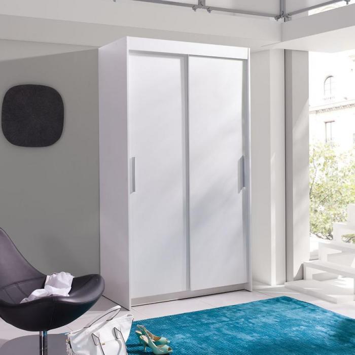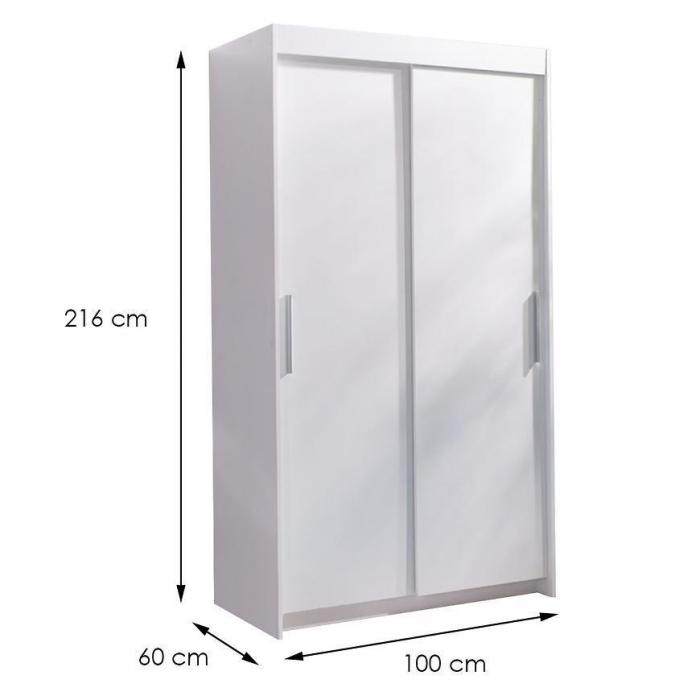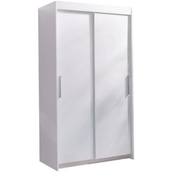 Szafa przesuwna w kolorze białym propozycja do pokoju dziennego, ale znajdzie swoje miejsce również w innym pomieszczeniu, jak na przykład - przedpokój czy garderobie. Materiał wykonania to płyta wiórowa laminowana. Nowoczesny styl mebli wpadnie do gustu każdemu, kto poszukuje eleganckiego, klasycznego, a zarazem nowoczesnego umeblowania. Idealnie wpasuje się w większość aranżacji. Przeznaczona do samodzielnego montażu.