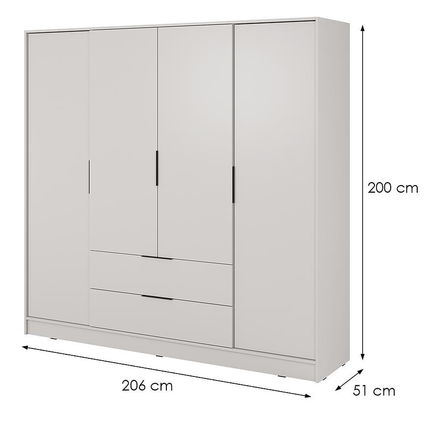 Szafa Kelly 4D bez lustra w eleganckim odcieniu cashmere to idealne połączenie nowoczesnego stylu i praktycznej funkcjonalności. Jej przestronna konstrukcja o szerokości 206 cm, wysokości 200 cm i głębokości 51 cm pozwala na wygodne przechowywanie ubrań, dodatków i domowych tekstyliów. Klasyczne czterodrzwiowe otwieranie ułatwia dostęp do zawartości, a stonowana kolorystyka w beżowym wybarwieniu cashmere wprowadza do wnętrza subtelny, nowoczesny klimat. Korpus i fronty wykonano z solidnej płyty wiórowej laminowanej o matowym wykończeniu, co zapewnia trwałość i elegancki wygląd przez długie lata. Szafa z kolekcji KELLY świetnie sprawdzi się w sypialni. Mebel dostarczany jest w paczkach do samodzielnego montażu, a jego łączna waga 156 kg gwarantuje stabilność i solidność. Wybierz szafę Kelly w kolorze cashmere i stwórz wnętrze pełne harmonii i stylu!