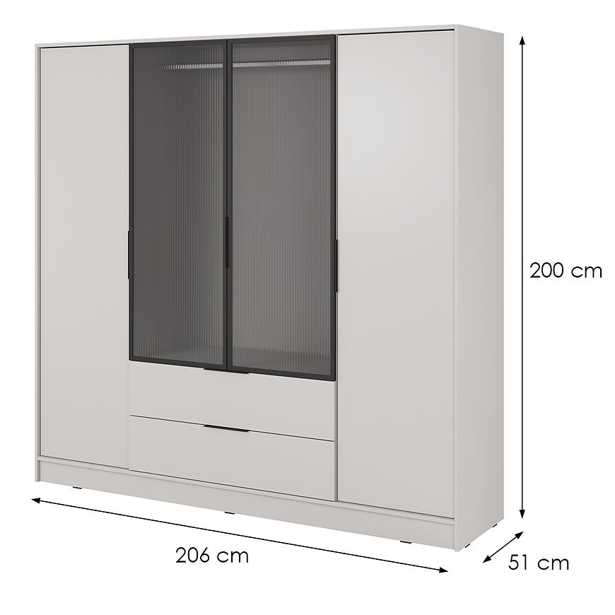 Szafa Kelly 4D RM bez lustra w subtelnym odcieniu cashmere z nowoczesnym oświetleniem LED to elegancki i praktyczny wybór do sypialni. Duże wymiary – 206 cm szerokości, 200 cm wysokości i 51 cm głębokości – oferują komfortową przestrzeń do przechowywania ubrań, pościeli i dodatków. Cztery klasyczne drzwi ułatwiają dostęp do wnętrza, a matowe wykończenie w ciepłym, beżowym odcieniu cashmere nadaje meblowi przytulny, nowoczesny charakter. Szafa została wykonana z trwałej płyty wiórowej laminowanej, co gwarantuje solidność i długotrwałe użytkowanie – całość waży 165 kg. Zintegrowane oświetlenie LED to funkcjonalny dodatek, który podnosi komfort codziennego użytkowania, zwłaszcza wieczorem. Model z kolekcji KELLY to idealne połączenie estetyki i praktyczności, zaprojektowane z myślą o nowoczesnej sypialni. Mebel dostarczany jest w paczkach do samodzielnego montażu – gotowy, by nadać Twojej sypialni elegancji i porządku.