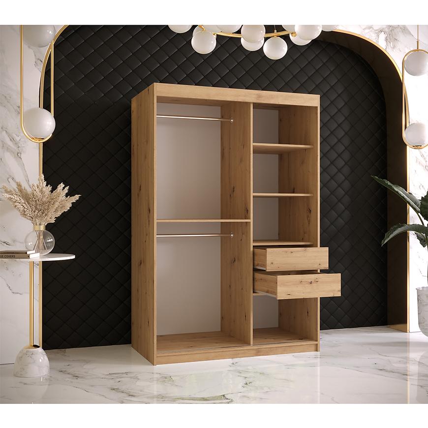Szafa Kinszasa 2 z drzwiami przesuwnymi to wyjątkowe połączenie funkcjonalności, naturalnego designu i dbałości o środowisko. Dwudrzwiowa konstrukcja tej szafy nie tylko optymalnie wykorzystuje dostępną przestrzeń, ale także prezentuje się nowocześnie, wpisując się w nurt ekologicznych trendów.