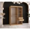 Prowadnice aluminiowe i uchwyty z tworzywa sztucznego w kolorze czarnym dodają szafie nowoczesnego charakteru, podkreślając jej funkcjonalność. Tył szafy wykonany jest z płyty HDF, co dodatkowo zwiększa trwałość i stabilność konstrukcji. Innowacyjny system przesuwny firmy BIMAK sprawia, że korzystanie z szafy jest wygodne i bezproblemowe. Krawędzie wykończenia z odporną na uszkodzenia okleiną PCV 0,5 mm zapewniają długotrwałą estetykę.