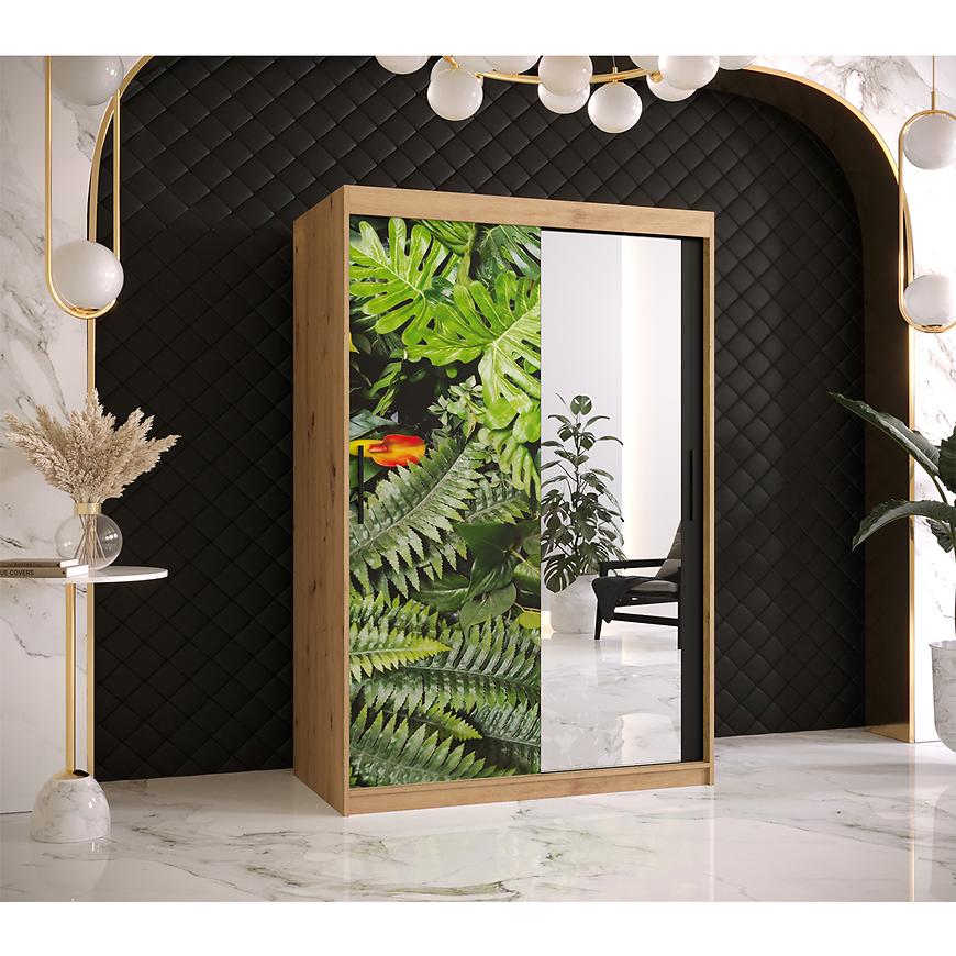 Matowe wykończenie szafy Kinszasa nadaje jej eleganckiego i stonowanego charakteru, jednocześnie chroniąc powierzchnię przed zarysowaniami. Konstrukcja frontów i korpusu oparta jest na solidnej płycie wiórowej laminowanej o grubości 16 mm, co zapewnia trwałość i estetyczny wygląd. Unikalny wzór roślinny, nie będący jedynie naklejką, nadaje szafie Kinszasa ekologiczny i naturalny wygląd, sprawiając, że staje się ona nie tylko meblem, ale również designerskim elementem dekoracyjnym.