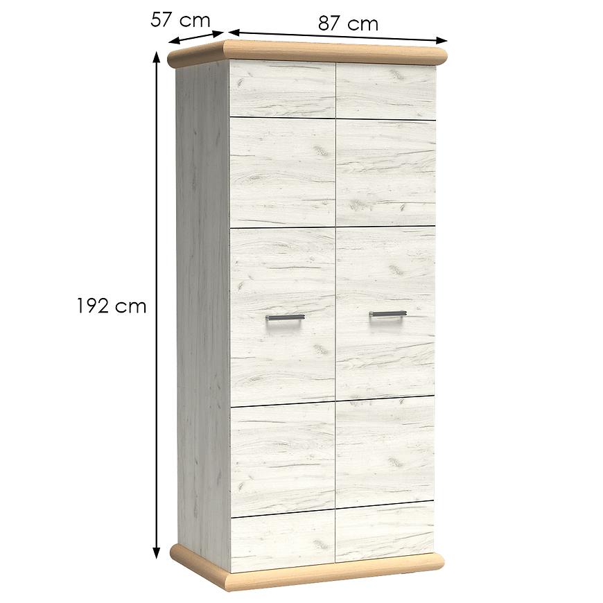 Szafa w kolorze kraft biały/kraft złoty z serii Kora to doskonała propozycja do pokoju dziennego, ale znajdzie swoje miejsce również w innym pomieszczeniu, jak na przykład - przedpokój czy garderobie, sypialni. Materiał wykonania to płyta laminowana. Mebel będzie świetnym miejscem do wieszania ubrań, na buty lub inne domowe tekstylia. Nowoczesny styl mebli wpadnie do gustu każdemu, kto poszukuje eleganckiego, klasycznego, a zarazem nowoczesnego umeblowania. Idealnie wpasuje się w większość aranżacji. Szafa przeznaczona do samodzielnego montażu.