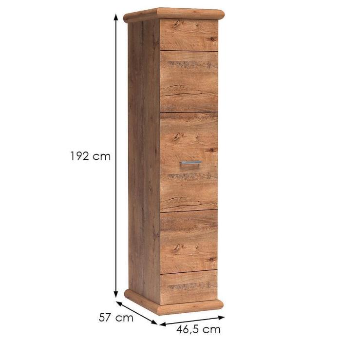 Szafa Kora to propozycja do pokoju dziennego, ale znajdzie swoje miejsce również w innym pomieszczeniu, jak na przykład - przedpokój czy garderoba. Materiał wykonania to płyta wiórowa laminowana. Nowoczesny styl mebli wpadnie do gustu każdemu, kto poszukuje eleganckiego, klasycznego, a zarazem nowoczesnego umeblowania. Idealnie wpasuje się w większość aranżacji. Przeznaczona do samodzielnego montażu.