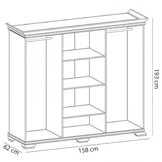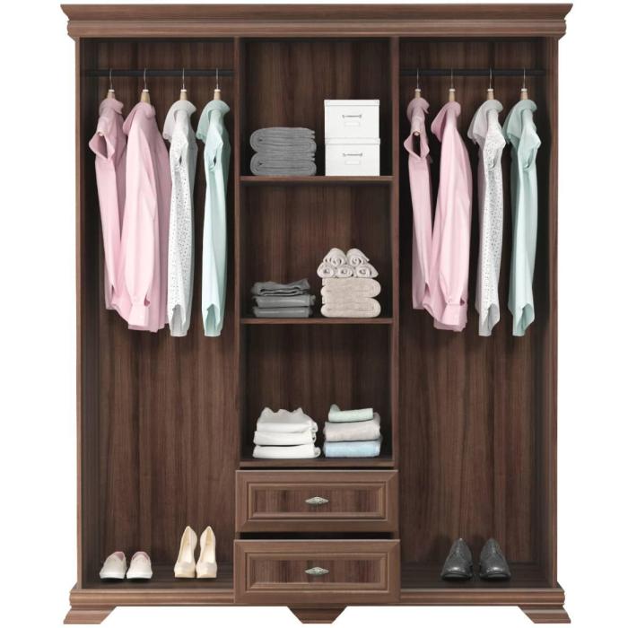 Szafa Kora KS2 to element systemu pokojowego, którego stylistyka może znaleźć zastosowanie w różnych pomieszczeniach - biurze, salonie lub jadalni. Stanowi odwołanie do ponadczasowych wzorców i prostej stylistyki w ciepłych wariantach kolorystycznych. Jeśli więc uwielbiasz nawiązania do klasyki i masz dużą przestrzeń do zagospodarowania - to rozwiązanie jest dla Ciebie. Fronty oraz korpus szafy zostały wykonane z płyty laminowanej wysokiej jakości (półki mają grubość 15 milimetrów). Nogi mebla to stylizowana listwa MDF z okleiną foliową. W zestawie znajdują się dwie szuflady, drążek na ubrania, trzydrzwiowy front z lustrem i trzy półki pośrodku. Całość jest dopełnieniem kolekcji Kora (którą można kompletować według własnego uznania) i wykończona ozdobnymi uchwytami. Szafa Kora KS2 jest solidnie wykonana i przeznaczona do samodzielnego złożenia (zawiera akcesoria montażowe oraz instrukcję). Całość mieści się w wymiarach 158x193x62 cm (S-W-G).