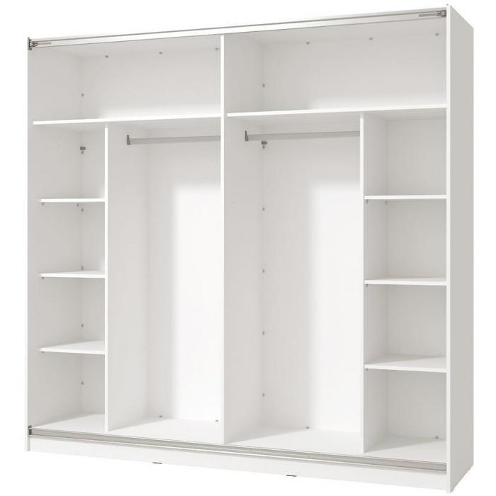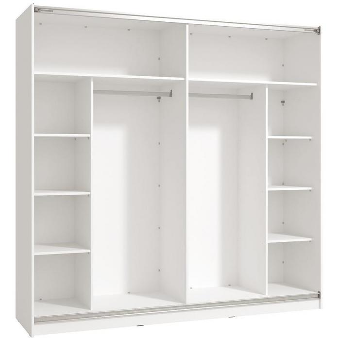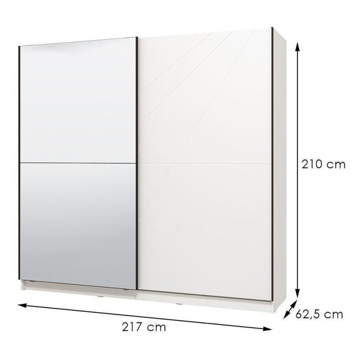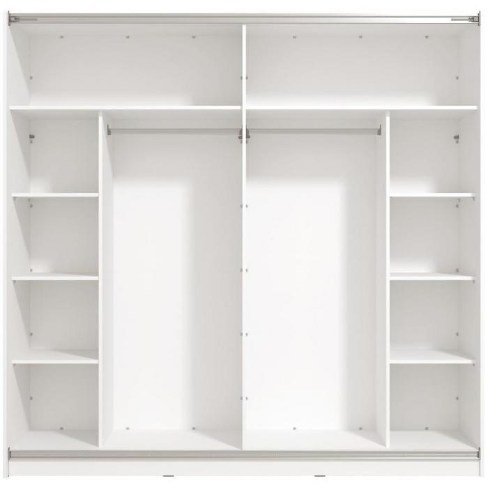 Szafa z drzwiami przesuwnymi Ksanti to doskonały wybór do garderoby, przedpokoju, salonu czy sypialni. Kolor frontów i korpusu sprawiają, że wpasuje się w większość aranżacji. Jej wnętrze jest pojemne i pomieści zarówno ubrania jak i inne akcesoria. Szafa jest 2-drzwiowa.