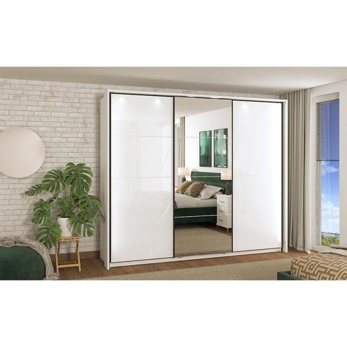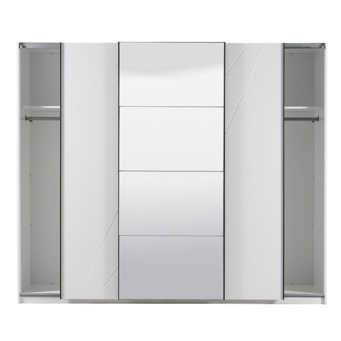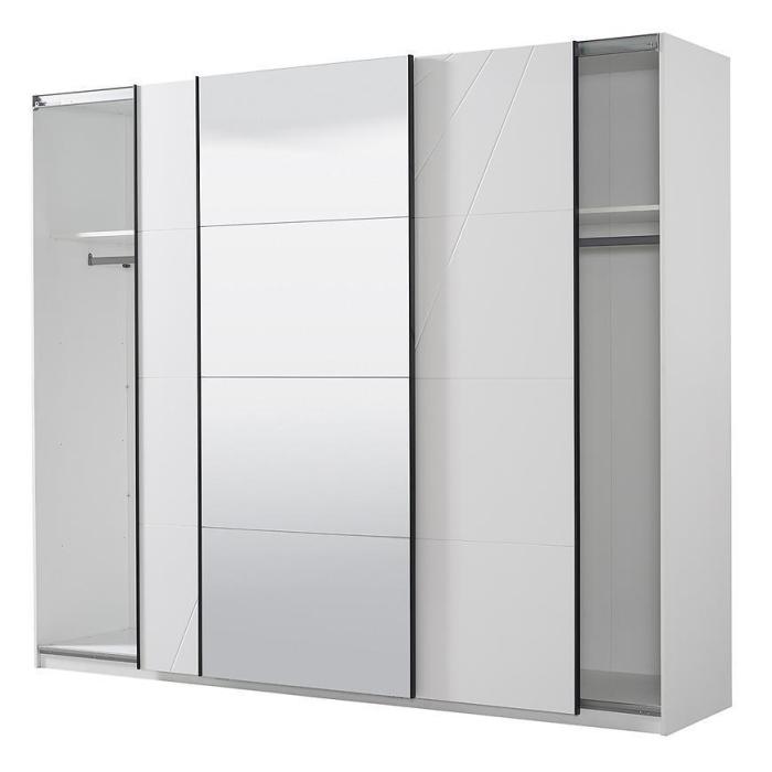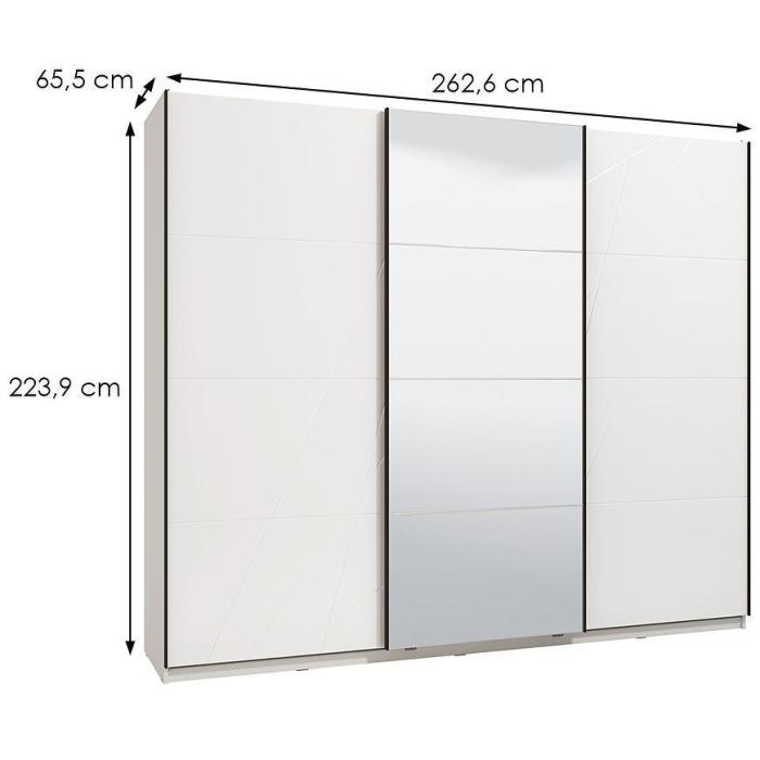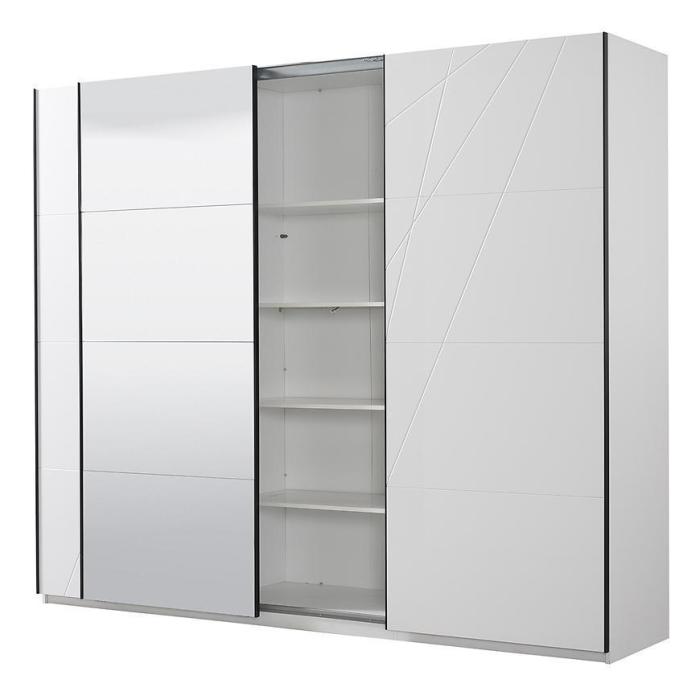 Szafa KSANTI to doskonała propozycja do sypialni, a także do przedpokoju. Może stanowić doskonałe uzupełnienie garderoby. Korpus i fronty szafy wykonane są w kolorze białym. Korpus w matowym wykończeniu. Wygląd szafy jest minimalistyczny, nowoczesny i będzie pasować do większości aranżacji.
