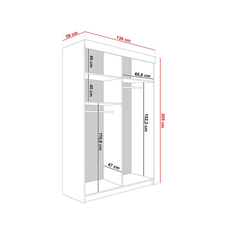 Szafa Lamaro to doskonałe połączenie elegancji, funkcjonalności i trwałości. Szafa o wymiarach 138x205x59cm jest idealnym rozwiązaniem do przechowywania zarówno ubrań, jak i innych przedmiotów.