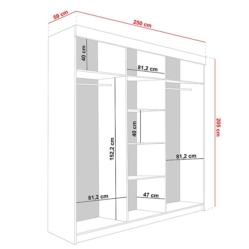 Szafa Lamaro to doskonałe połączenie elegancji, funkcjonalności i trwałości. Szafa o wymiarach 250x205x59cm jest idealnym rozwiązaniem do przechowywania zarówno ubrań, jak i innych przedmiotów.
