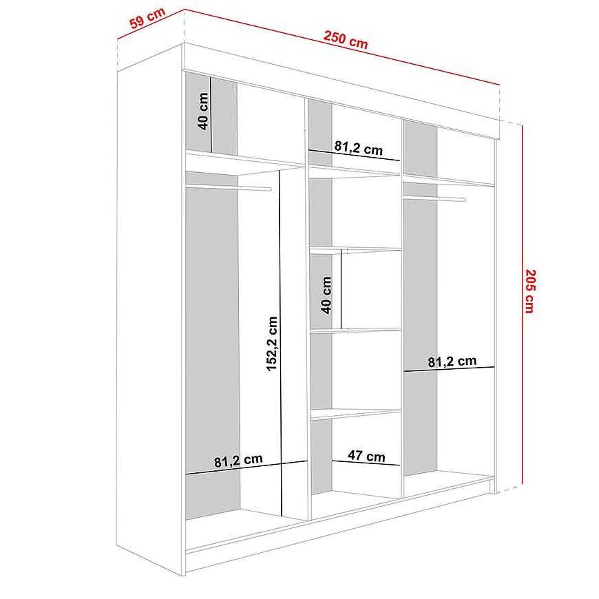 Szafa Lamaro to doskonałe połączenie elegancji, funkcjonalności i trwałości. Szafa o wymiarach 250x205x59cm jest idealnym rozwiązaniem do przechowywania zarówno ubrań, jak i innych przedmiotów.