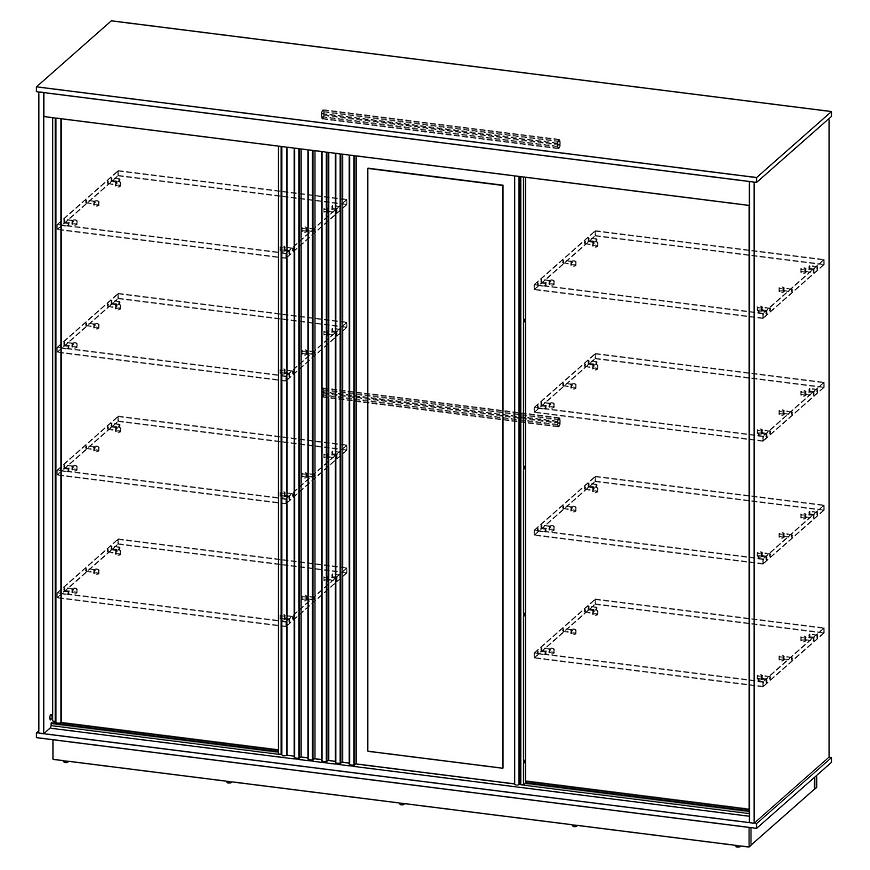 Drzwi i lustro: Szafa Lamelo wyposażona jest w uchylne drzwi, które zapewniają łatwy dostęp do wnętrza szafy. Zintegrowane lustro na jednym z frontów nie tylko dodaje elegancji, ale również praktyczności, umożliwiając szybkie sprawdzenie wyglądu przed wyjściem z domu.
