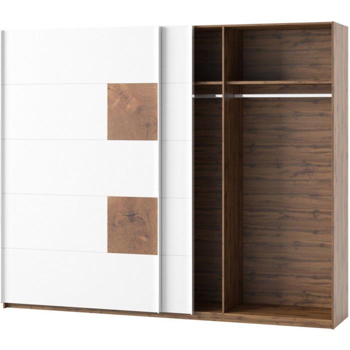 Szafa w kolorze dąb wotan/biały z serii Livorno to doskonała propozycja do pokoju dziennego, ale znajdzie swoje miejsce również w innym pomieszczeniu, jak na przykład - przedpokój czy garderobie, sypialni. Szafa posiada półki, drążek na ubrania. Wygląd szafy sprawi, że wpasuje się w większość aranżacji. Szafa będzie świetnym miejscem do wieszania ubrań, na buty lub inne domowe tekstylia. Nowoczesny styl mebli wpadnie do gustu każdemu, kto poszukuje eleganckiego, klasycznego, a zarazem nowoczesnego umeblowania. Idealnie wpasuje się w większość aranżacji. Szafa przeznaczona do samodzielnego montażu.