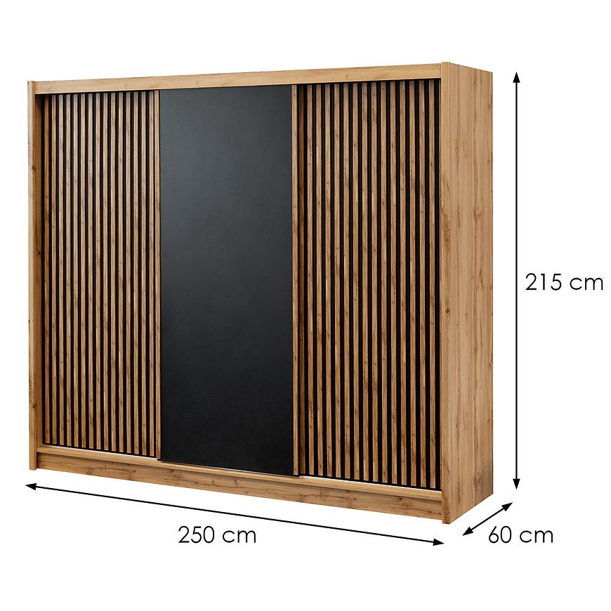 Szafa London to doskonałe połączenie nowoczesnego stylu, funkcjonalności i elegancji. Jej trzydrzwiowa konstrukcja z drzwiami przesuwnymi sprawia, że jest nie tylko praktycznym rozwiązaniem, ale również oszczędnym w użyciu przestrzeni, idealnym do nowoczesnych wnętrz.