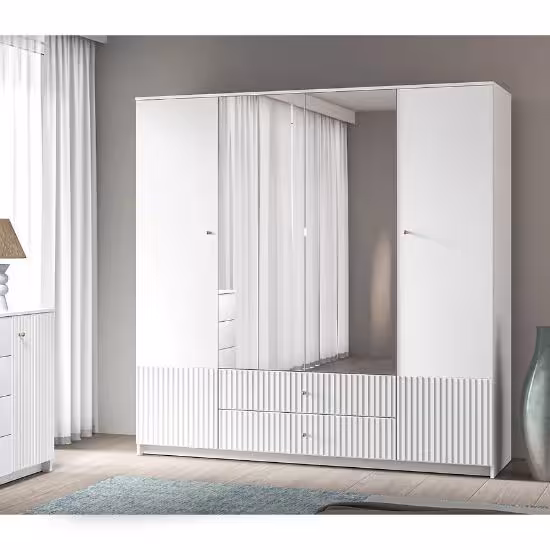Lustra umieszczone na drzwiach nie tylko dodają szafie elegancji, ale także praktyczności, pozwalając na wygodne przeglądanie się i wizualne powiększenie pomieszczenia.
