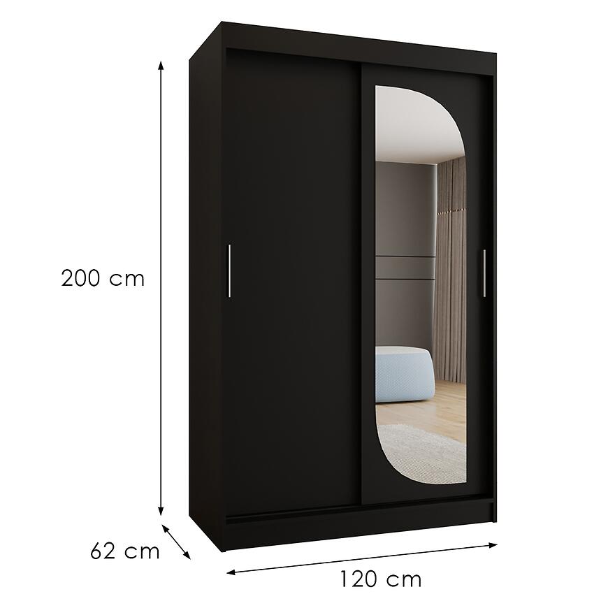 Szafa LUCY 120 czarny to elegancki i funkcjonalny element wyposażenia, który wprowadza nowoczesny i wyrazisty styl do sypialni lub garderoby. Dwudrzwiowa konstrukcja z lustrem i drzwiami przesuwnymi zapewnia wygodę użytkowania i optymalne wykorzystanie przestrzeni, a czarny kolor pozwala łatwo komponować mebel z innymi elementami wnętrza.