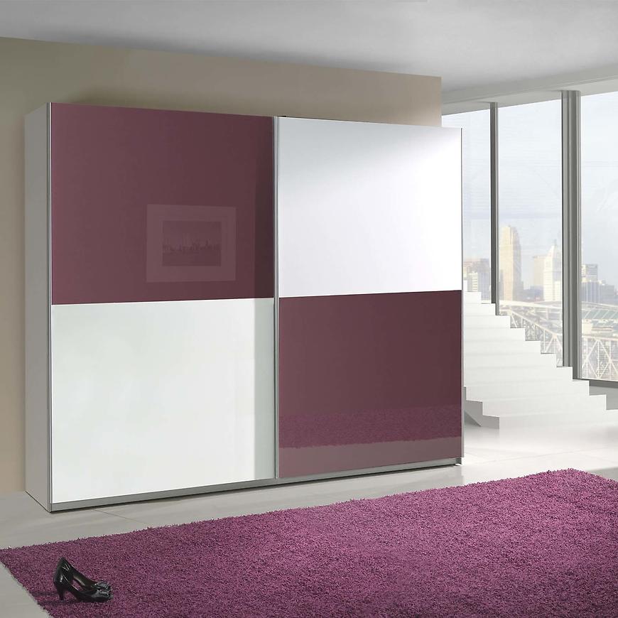 Fronty utrzymane są w odcieniu fioletu i czerni, natomiast korpus w kolorze białym. Błyszczące wykończenie dodaje szafie elegancji i nowoczesności. Konstrukcja szafy opiera się na płycie wiórowej laminowanej, co zapewnia trwałość i odporność na uszkodzenia. Krawędzie zostały dodatkowo zabezpieczone obrzeżem ABS, co chroni przed ewentualnymi uszkodzeniami. Grubość korpusów i frontów wynosi 16 mm, co zapewnia solidność i trwałość mebla. Aluminiowe profile boczne dodają szafie nowoczesnego charakteru.