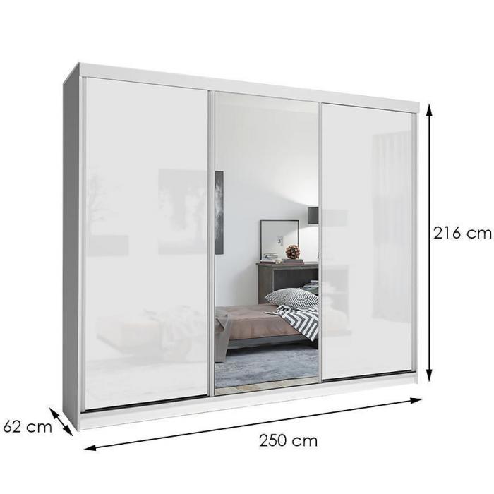 Szafa w kolorze białym z serii Lux to doskonała propozycja do pokoju dziennego, ale znajdzie swoje miejsce również w innym pomieszczeniu, jak na przykład - przedpokój czy garderobie, sypialni. Materiał wykonania to płyta laminowana. Duża szafa posiada również lustro, które sprawi, że pomieszczenie stanie się optycznie większe. Szafa będzie świetnym miejscem do wieszania ubrań, na buty lub inne domowe tekstylia. Nowoczesny styl mebli wpadnie do gustu każdemu, kto poszukuje eleganckiego, klasycznego, a zarazem nowoczesnego umeblowania. Idealnie wpasuje się w większość aranżacji. Szafa przeznaczona do samodzielnego montażu.