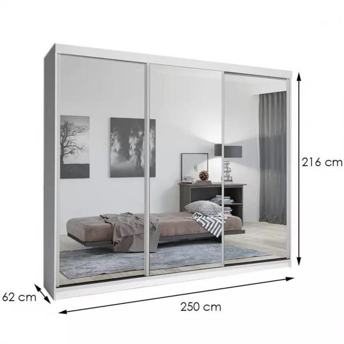 Szafa w kolorze białym z serii Lux to doskonała propozycja do pokoju dziennego, ale znajdzie swoje miejsce również w innym pomieszczeniu, jak na przykład - przedpokój czy garderobie, sypialni. Materiał wykonania to płyta laminowana. Duża szafa posiada również lustro, które sprawi, że pomieszczenie stanie się optycznie większe. Szafa będzie świetnym miejscem do wieszania ubrań, na buty lub inne domowe tekstylia. Nowoczesny styl mebli wpadnie do gustu każdemu, kto poszukuje eleganckiego, klasycznego, a zarazem nowoczesnego umeblowania. Idealnie wpasuje się w większość aranżacji. Szafa przeznaczona do samodzielnego montażu.