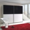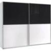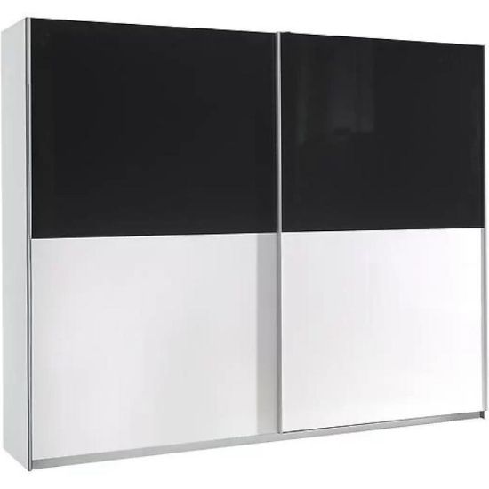 Fronty utrzymane są w kolorze bieli i czerni, natomiast korpus w kolorze białym. Błyszczące wykończenie dodaje szafie elegancji i nowoczesności. Konstrukcja szafy opiera się na płycie wiórowej laminowanej, co zapewnia trwałość i odporność na uszkodzenia. Krawędzie zostały dodatkowo zabezpieczone obrzeżem ABS, co chroni przed ewentualnymi uszkodzeniami. Grubość korpusów i frontów wynosi 16 mm, co zapewnia solidność i trwałość mebla. Aluminiowe profile boczne dodają szafie nowoczesnego charakteru.