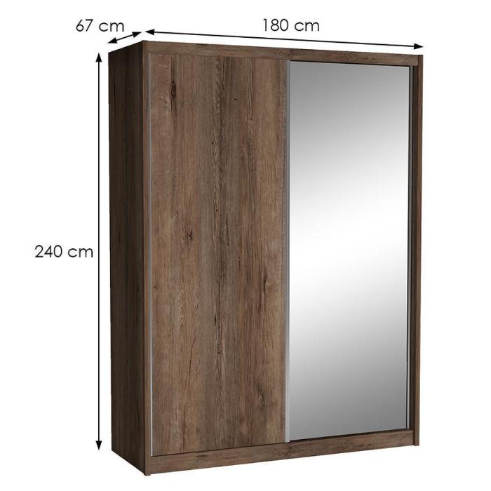 Szafa w kolorze dąb lefkas z kolekcji Maciej to doskonała propozycja do pokoju dziennego, ale znajdzie swoje miejsce również w innym pomieszczeniu, jak na przykład - przedpokój czy garderobie, sypialni. Materiał wykonania to płyta laminowana. Szafa posiada półki, drążek na ubrania oraz szuflady. Duża szafa posiada również lustro, które sprawi, że pomieszczenie stanie się optycznie większe. Szafa będzie świetnym miejscem do wieszania ubrań, na buty lub inne domowe tekstylia. Nowoczesny styl mebli wpadnie do gustu każdemu, kto poszukuje eleganckiego, klasycznego, a zarazem nowoczesnego umeblowania. Idealnie wpasuje się w większość aranżacji. Szafa przeznaczona do samodzielnego montażu.