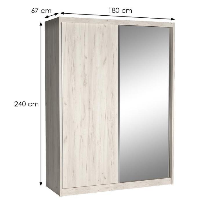 Szafa w kolorze kraft biały z kolekcji Maciej to doskonała propozycja do pokoju dziennego, ale znajdzie swoje miejsce również w innym pomieszczeniu, jak na przykład - przedpokój czy garderobie, sypialni. Materiał wykonania to płyta laminowana. Szafa posiada półki, drążek na ubrania oraz szuflady. Duża szafa posiada również lustro, które sprawi, że pomieszczenie stanie się optycznie większe. Szafa będzie świetnym miejscem do wieszania ubrań, na buty lub inne domowe tekstylia. Nowoczesny styl mebli wpadnie do gustu każdemu, kto poszukuje eleganckiego, klasycznego, a zarazem nowoczesnego umeblowania. Idealnie wpasuje się w większość aranżacji. Szafa przeznaczona do samodzielnego montażu.
