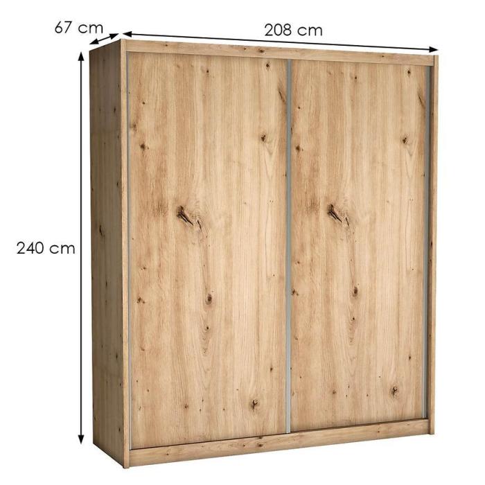 Szafa w kolorze dąb artisan z serii Maciej to doskonała propozycja do pokoju dziennego, ale znajdzie swoje miejsce również w innym pomieszczeniu, jak na przykład - przedpokój czy garderobie, sypialni. Materiał wykonania to płyta laminowana. Szafa posiada półki, drążek na ubrania oraz szuflady. Mebel będzie świetnym miejscem do wieszania ubrań, na buty lub inne domowe tekstylia. Styl mebli wpadnie do gustu każdemu, kto poszukuje eleganckiego, klasycznego, a zarazem nowoczesnego umeblowania. Idealnie wpasuje się w większość aranżacji. Szafa przeznaczona do samodzielnego montażu.