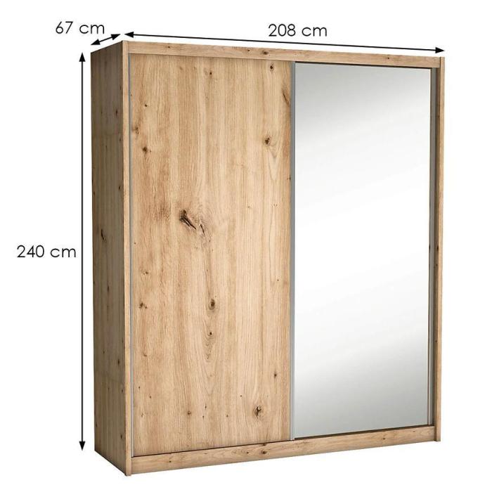 Szafa w kolorze dąb artisan z serii Maciej to doskonała propozycja do pokoju dziennego, ale znajdzie swoje miejsce również w innym pomieszczeniu, jak na przykład - przedpokój czy garderobie, sypialni. Materiał wykonania to płyta laminowana. Szafa posiada półki, drążek na ubrania oraz szuflady, a także lustro, które sprawi, że pomieszczenie stanie się optycznie większe. Mebel będzie świetnym miejscem do wieszania ubrań, na buty lub inne domowe tekstylia. Styl mebli wpadnie do gustu każdemu, kto poszukuje eleganckiego, klasycznego, a zarazem nowoczesnego umeblowania. Idealnie wpasuje się w większość aranżacji. Szafa przeznaczona do samodzielnego montażu.