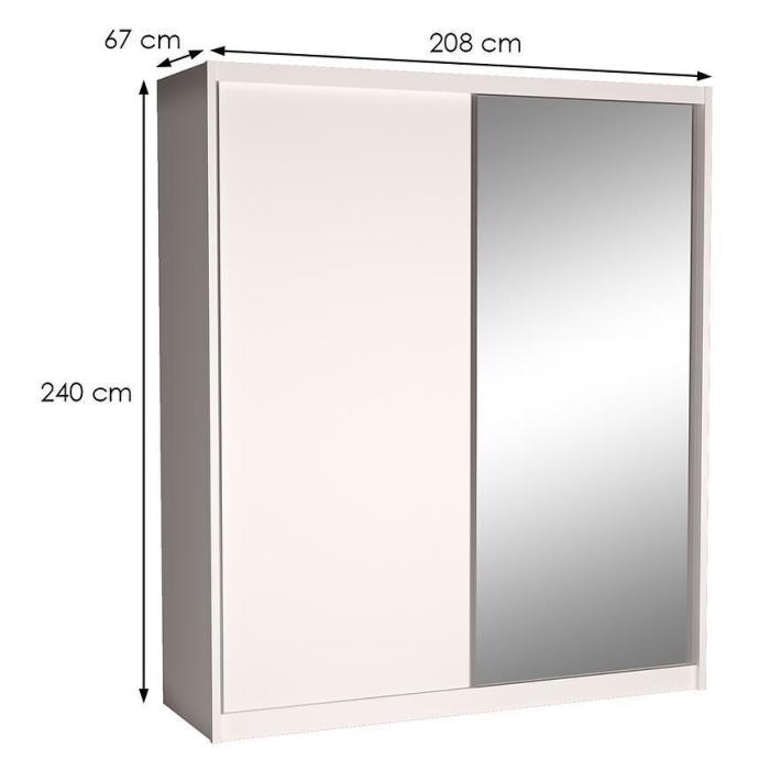 Szafa w kolorze białym z kolekcji Maciej to doskonała propozycja do pokoju dziennego, ale znajdzie swoje miejsce również w innym pomieszczeniu, jak na przykład - przedpokój czy garderobie, sypialni. Materiał wykonania to płyta laminowana. Szafa posiada półki, drążek na ubrania oraz szuflady. Duża szafa posiada również lustro, które sprawi, że pomieszczenie stanie się optycznie większe. Szafa będzie świetnym miejscem do wieszania ubrań, na buty lub inne domowe tekstylia. Nowoczesny styl mebli wpadnie do gustu każdemu, kto poszukuje eleganckiego, klasycznego, a zarazem nowoczesnego umeblowania. Idealnie wpasuje się w większość aranżacji. Szafa przeznaczona do samodzielnego montażu.