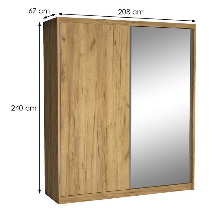 Szafa Maciej to propozycja do pokoju dziennego, ale znajdzie swoje miejsce również w innym pomieszczeniu, jak na przykład - przedpokój czy garderoba. Materiał wykonania to płyta wiórowa laminowana. Szafa posiada półki, szuflady oraz drążek na ubrania, a także lustro. Nowoczesny styl mebli wpadnie do gustu każdemu, kto poszukuje eleganckiego, klasycznego, a zarazem nowoczesnego umeblowania. Idealnie wpasuje się w większość aranżacji. Przeznaczona do samodzielnego montażu.