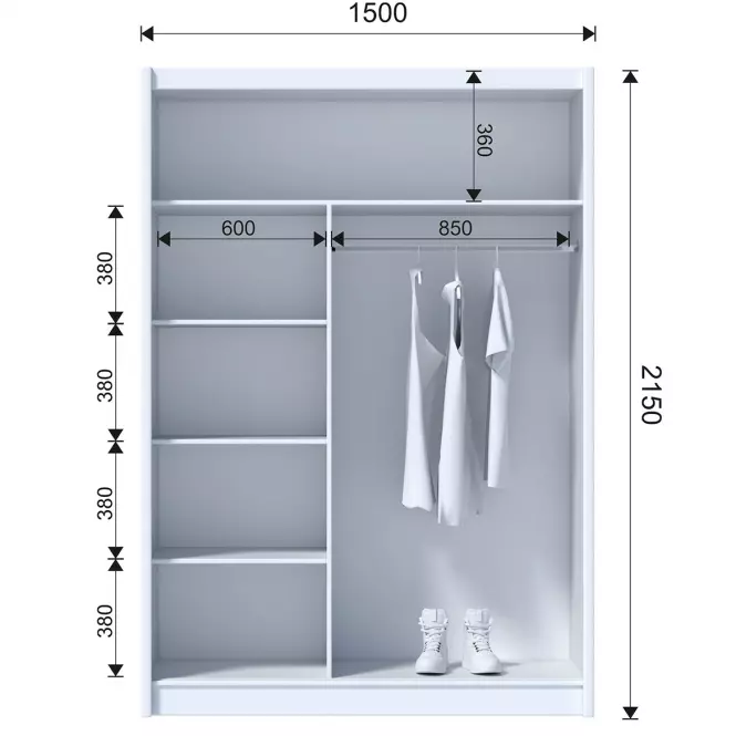 Wnętrze szafy jest starannie przemyślane – znajdziesz w niej zarówno miejsce na wieszaki, jak i półki, co umożliwia łatwe uporządkowanie ubrań i akcesoriów. Jest to mebel idealny dla osób, które cenią sobie ład i porządek, a jednocześnie pragną, aby ich wnętrza były stylowe i nowoczesne.