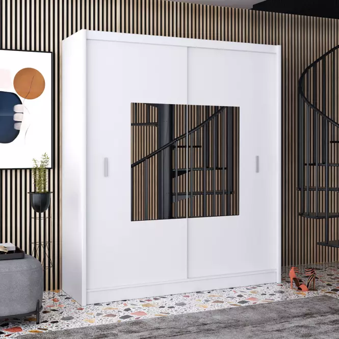 Szafa Madryt to idealny wybór dla osób, które cenią nowoczesny styl, minimalistyczny design i funkcjonalne rozwiązania. Jej biała kolorystyka w połączeniu z przesuwnymi drzwiami i dużym lustrem sprawia, że jest to mebel nie tylko praktyczny, ale również elegancki, który doskonale wpisze się w każdą nowoczesną aranżację wnętrza.