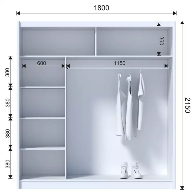 Wnętrze szafy jest starannie przemyślane – znajdziesz w niej zarówno miejsce na wieszaki, jak i półki, co umożliwia łatwe uporządkowanie ubrań i akcesoriów. Jest to mebel idealny dla osób, które cenią sobie ład i porządek, a jednocześnie pragną, aby ich wnętrza były stylowe i nowoczesne.