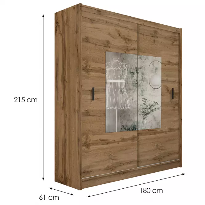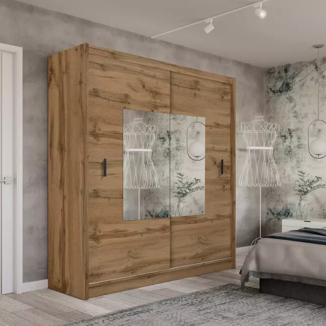Szafa pochodzi z kolekcji MADRYT, która słynie z prostoty, funkcjonalności i nowoczesnego designu. Doskonale sprawdzi się w aranżacjach wnętrz, które cenią prostotę, ale nie chcą rezygnować z eleganckich detali. We wnętrzu szafy znajdziesz starannie zaplanowaną przestrzeń, która umożliwia przechowywanie odzieży w sposób uporządkowany – liczne półki, drążki na wieszaki i przestrzeń do przechowywania sprawiają, że organizacja garderoby staje się łatwa i przyjemna.