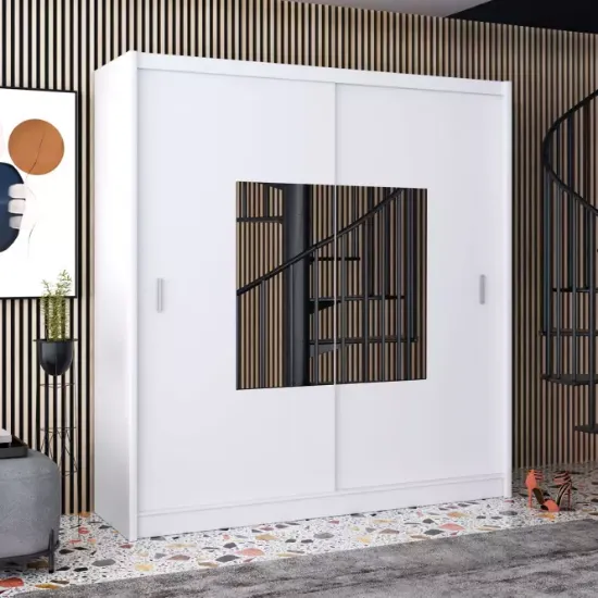 Szafa Madryt to idealny wybór dla osób, które cenią nowoczesny styl, minimalistyczny design i funkcjonalne rozwiązania. Jej biała kolorystyka w połączeniu z przesuwnymi drzwiami i dużym lustrem sprawia, że jest to mebel nie tylko praktyczny, ale również elegancki, który doskonale wpisze się w każdą nowoczesną aranżację wnętrza.