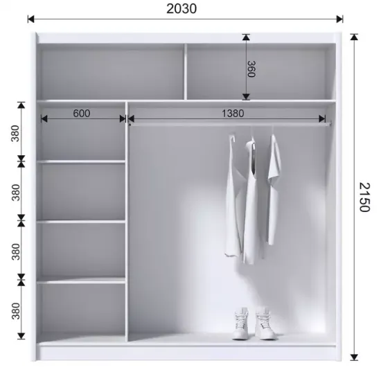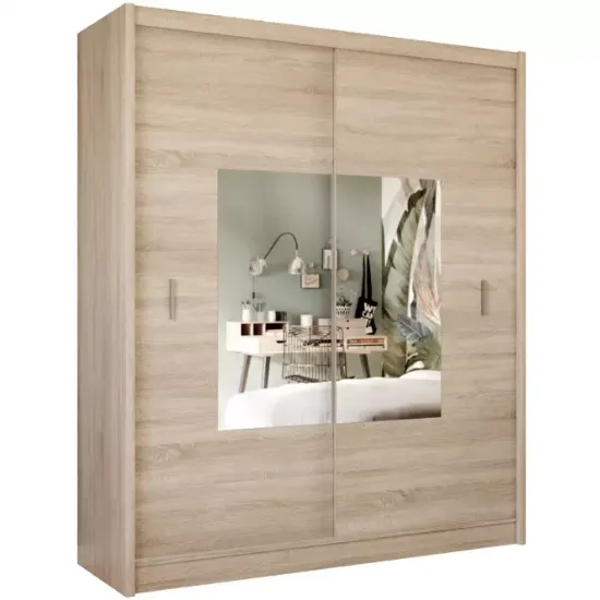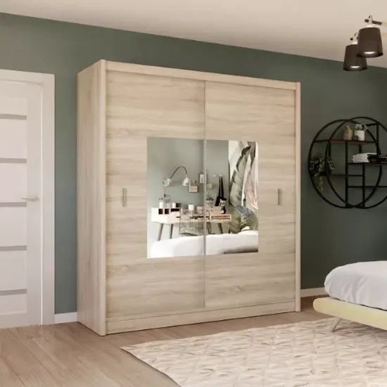 Szafa Madryt pochodzi z kolekcji o tej samej nazwie, która charakteryzuje się nowoczesnym podejściem do projektowania mebli. Prosta konstrukcja i minimalistyczny styl sprawiają, że mebel ten z łatwością dopasuje się do sypialni, przedpokoju, a nawet biura. Szafa oferuje mnóstwo miejsca na ubrania, a dzięki przesuwnym drzwiom pozwala na organizację przestrzeni w sposób optymalny.