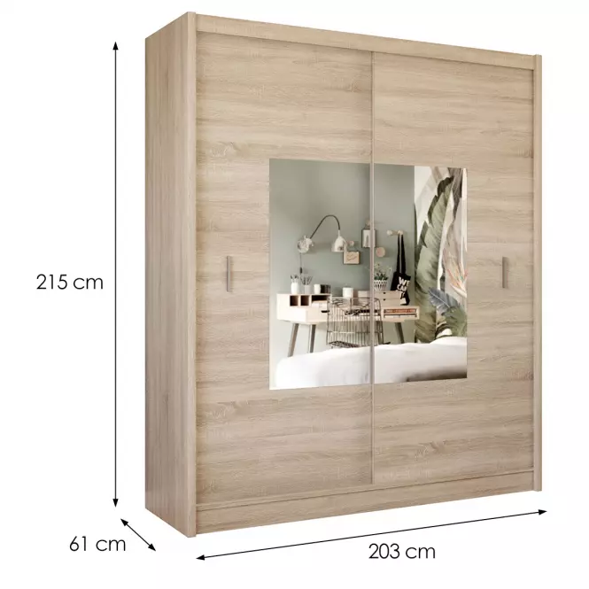 Szafa Madryt to świetny wybór, który łączy w sobie praktyczność z nowoczesnym designem. Jej jasne drewnopodobne wybarwienie i solidna konstrukcja sprawiają, że jest to inwestycja na lata, która doskonale wpasuje się w każde nowoczesne wnętrze.