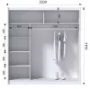 Wnętrze szafy jest starannie przemyślane – znajdziesz w niej zarówno miejsce na wieszaki, jak i półki, co umożliwia łatwe uporządkowanie ubrań i akcesoriów. Jest to mebel idealny dla osób, które cenią sobie ład i porządek, a jednocześnie pragną, aby ich wnętrza były stylowe i nowoczesne.