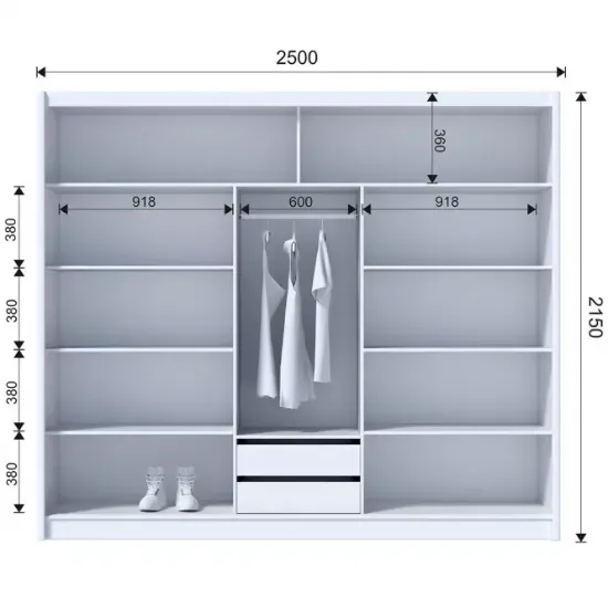 Wnętrze szafy jest starannie przemyślane – znajdziesz w niej zarówno miejsce na wieszaki, jak i półki, co umożliwia łatwe uporządkowanie ubrań i akcesoriów. Jest to mebel idealny dla osób, które cenią sobie ład i porządek, a jednocześnie pragną, aby ich wnętrza były stylowe i nowoczesne.