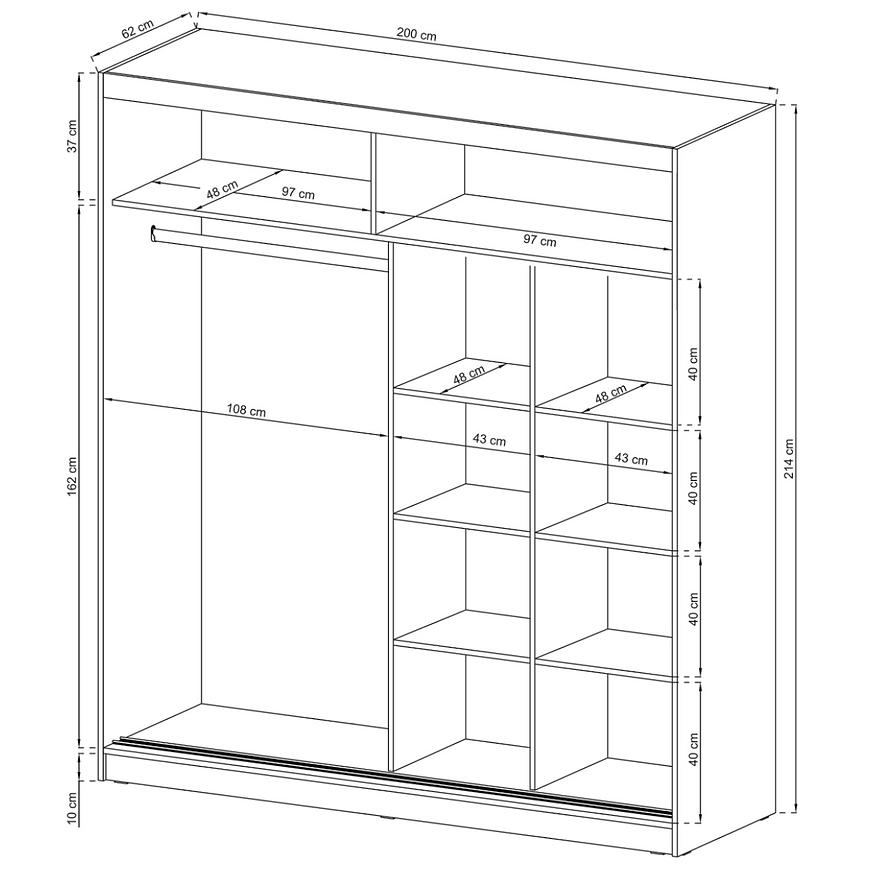 Szafa Maja to perfekcyjne połączenie nowoczesnego designu i funkcjonalności, które zaspokoi oczekiwania nawet najbardziej wymagających miłośników elegancji w aranżacji wnętrz. Jej dwudrzwiowe wykonanie z drzwiami przesuwnymi sprawia, że jest nie tylko praktycznym, ale także oszczędnym miejscem do przechowywania.
