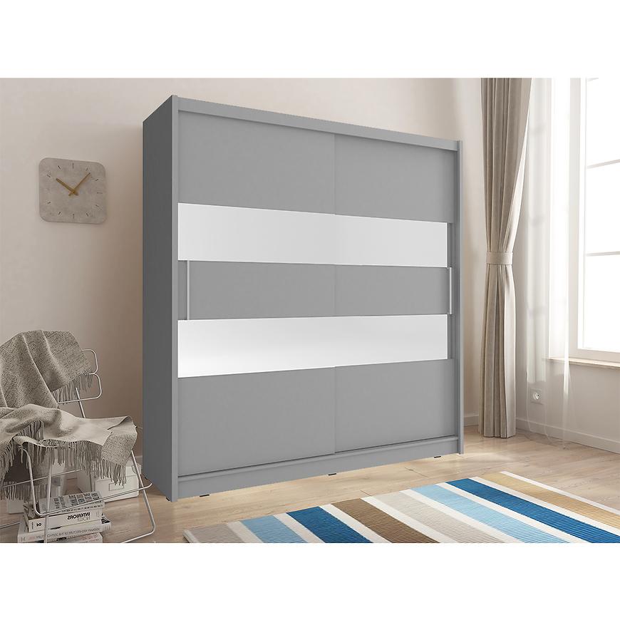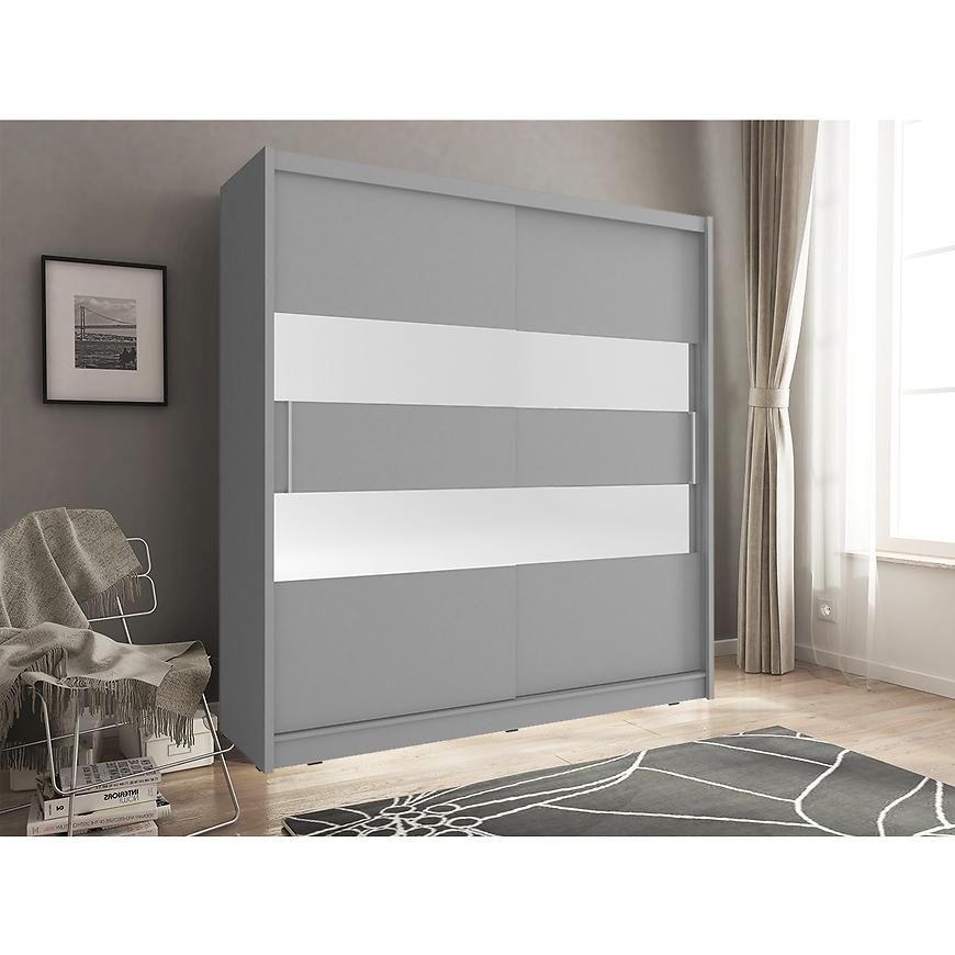Szafa Maja z 2 Pasami Lustra to doskonałe połączenie nowoczesnego designu i funkcjonalności, idealne dla osób ceniących sobie styl i praktyczne rozwiązania w przestrzeni swojej garderoby. Drzwi przesuwne tej szafy dodają elegancji, a dwudrzwiowa konstrukcja zintegrowana z dwoma pasami lustra nadaje wnętrzu lekkości i przestronności.