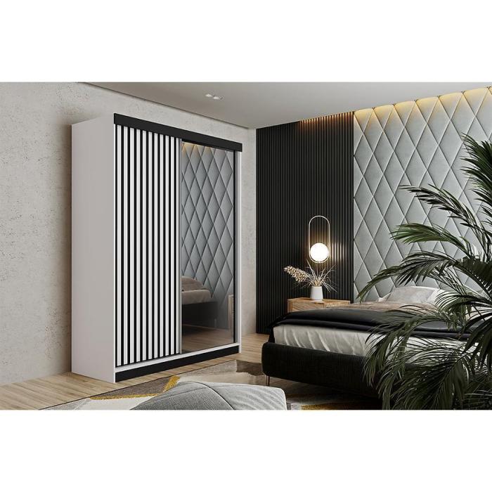 Szafa przesuwna Malani to propozycja do pokoju dziennego, ale znajdzie swoje miejsce również w innym pomieszczeniu, jak na przykład - przedpokój czy garderobie. Materiał wykonania to płyta wiórowa laminowana. Szafa posiada półki oraz drążek na ubrania. Mebel posiada lustro, które sprawi, że pomieszczenie stanie się optycznie większe. Nowoczesny styl mebli wpadnie do gustu każdemu, kto poszukuje eleganckiego, klasycznego, a zarazem nowoczesnego umeblowania. Idealnie wpasuje się w większość aranżacji. Przeznaczona do samodzielnego montażu.