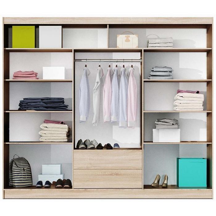 Szafa Malibu o długości 250 cm w kolorze białym to idealne rozwiązanie dla tych, którzy poszukują praktycznego i stylowego mebla do swojej sypialni. Z trzema przesuwnymi drzwiami oraz dwiema szufladami, zapewnia dużą pojemność na przechowywanie ubrań, pościeli i innych przedmiotów, jednocześnie optymalizując przestrzeń w pomieszczeniu.