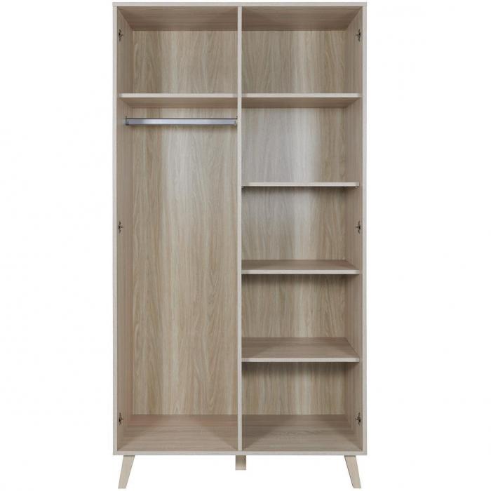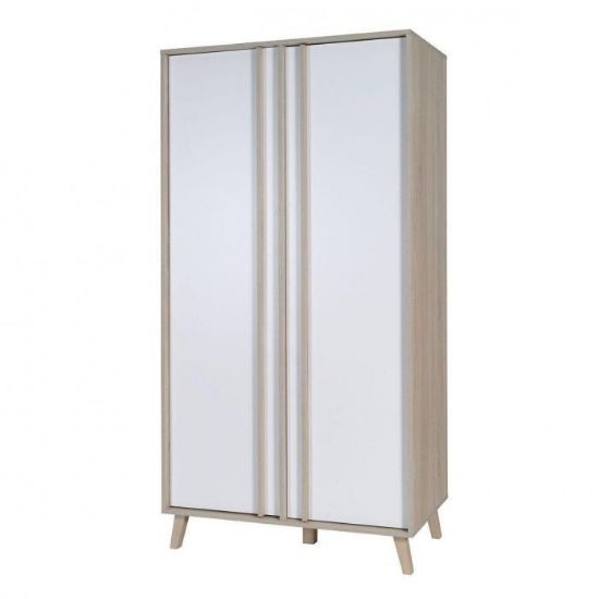 Szafa w kolorze dąb sonoma/biały alpejski z kolekcji Malmo to doskonała propozycja do pokoju dziennego, ale znajdzie swoje miejsce również w innym pomieszczeniu, jak na przykład - przedpokój czy garderobie, sypialni. Materiał wykonania to płyta laminowana. Szafa posiada półki, drążek na ubrania. Szafa będzie świetnym miejscem do wieszania ubrań, na buty lub inne domowe tekstylia. Nowoczesny styl mebli wpadnie do gustu każdemu, kto poszukuje eleganckiego, klasycznego, a zarazem nowoczesnego umeblowania. Idealnie wpasuje się w większość aranżacji. Szafa przeznaczona do samodzielnego montażu.