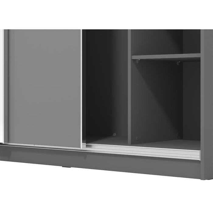 Szafa MARBELLA to doskonała propozycja do sypialni, a także do przedpokoju. Może stanowić doskonałe uzupełnienie garderoby. Korpus i fronty wykonane w kolorze grafitowym. Korpus w matowym wykończeniu. Wygląd szafy jest minimalistyczny, nowoczesny i będzie pasować do większości aranżacji.